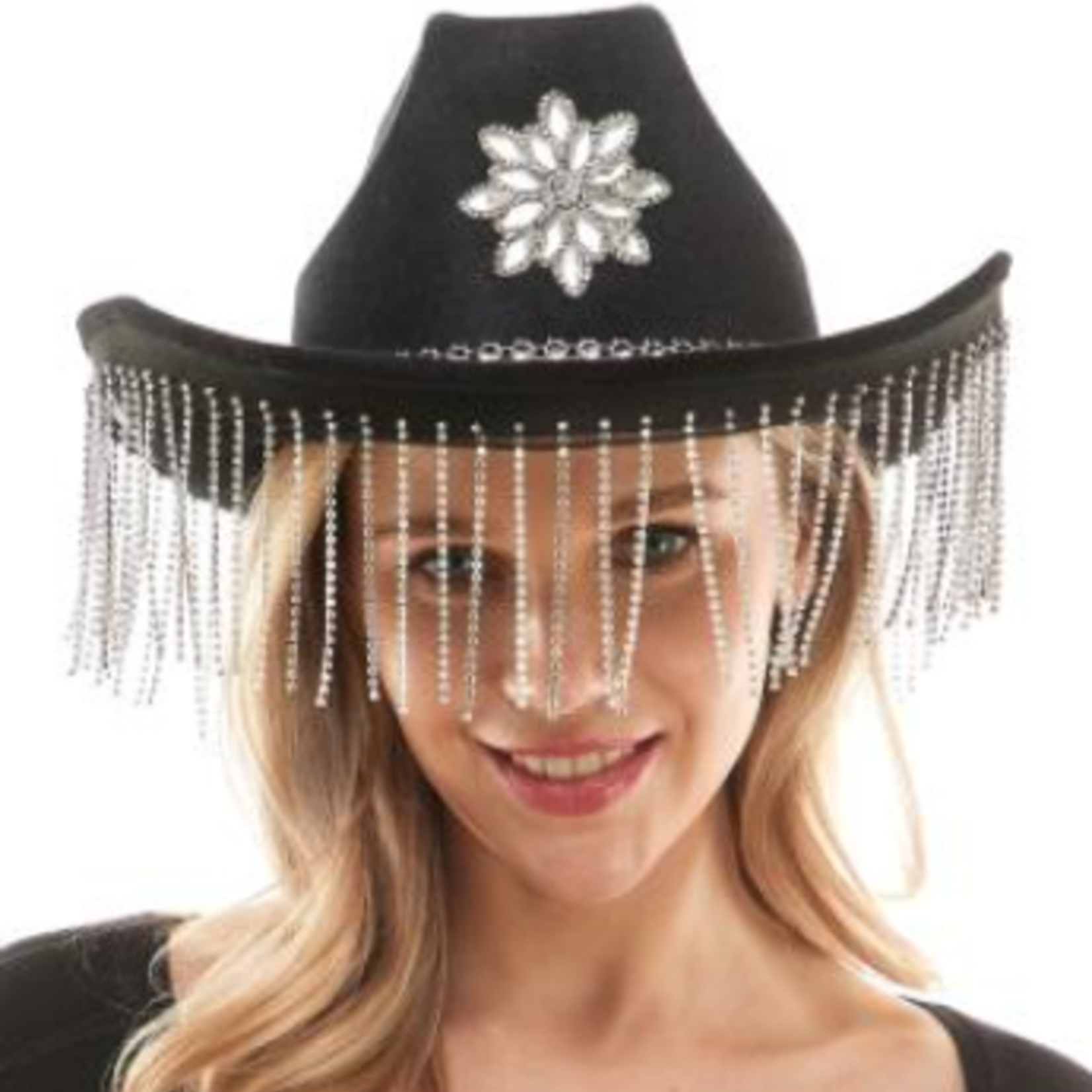 Cowgirl Hat Black Velvet with Diamond Fringes and Gem Star